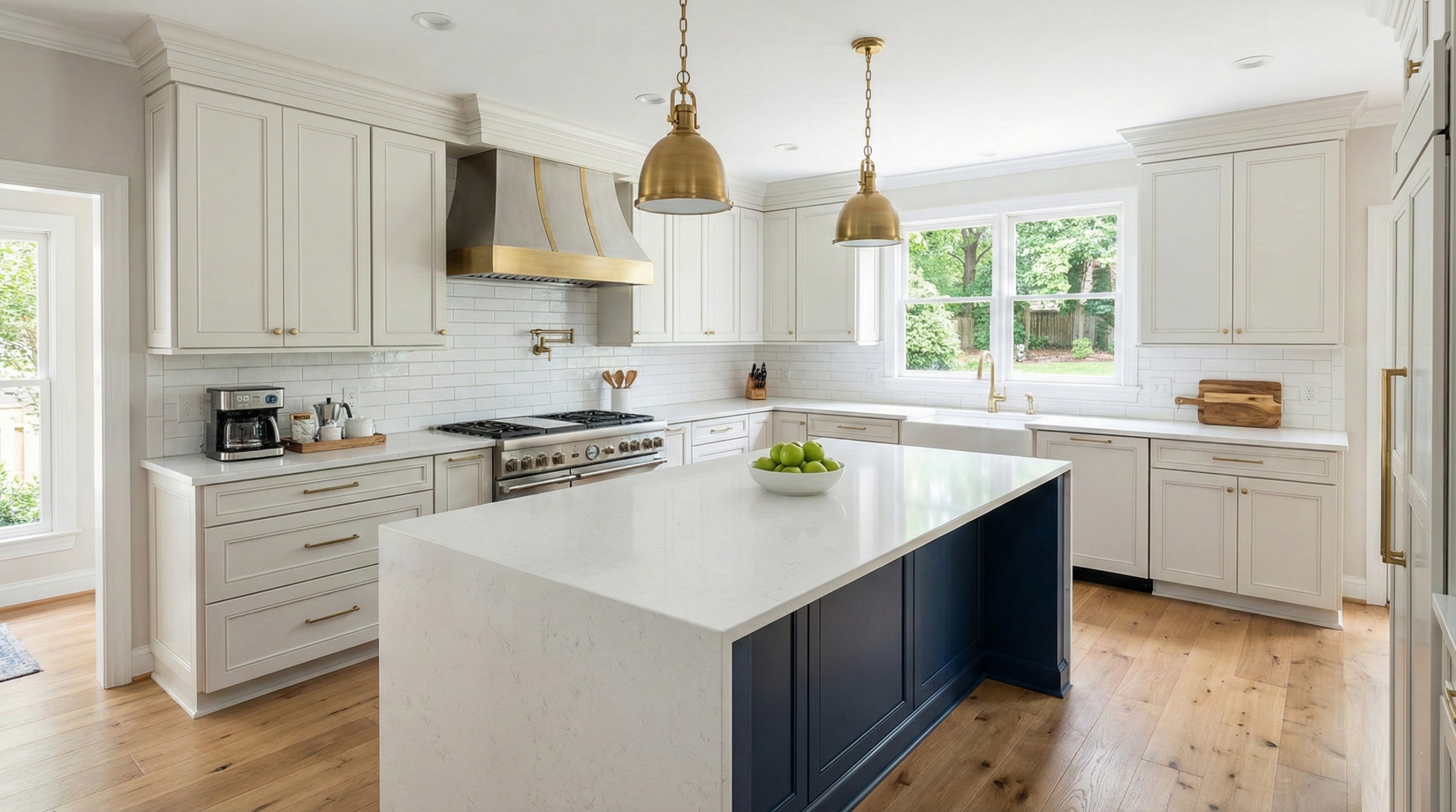 with careful coordination across cabinets, countertops, tile, lighting, and finishes