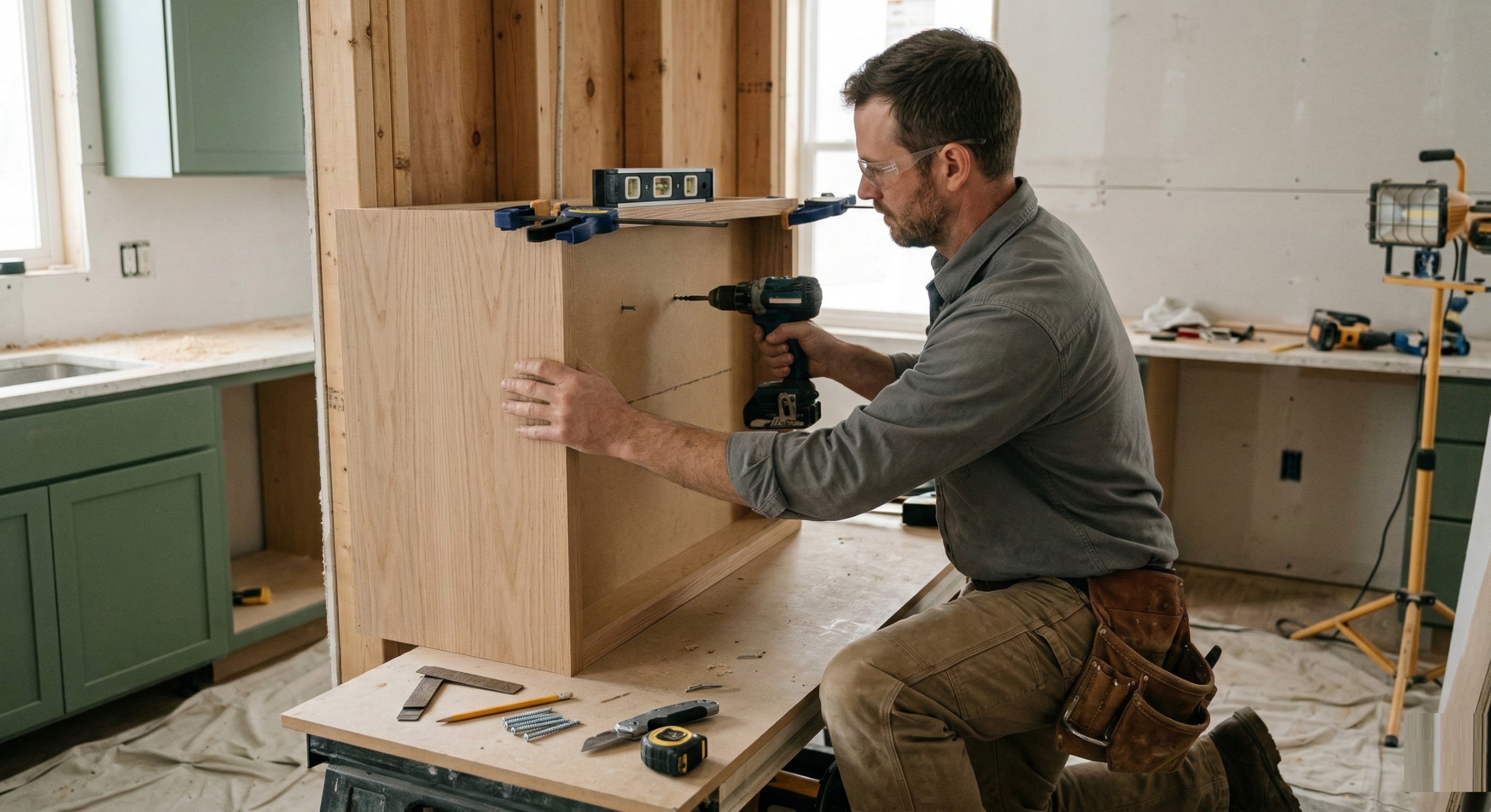 Coordinated cabinet installation and countertop templating schedule -