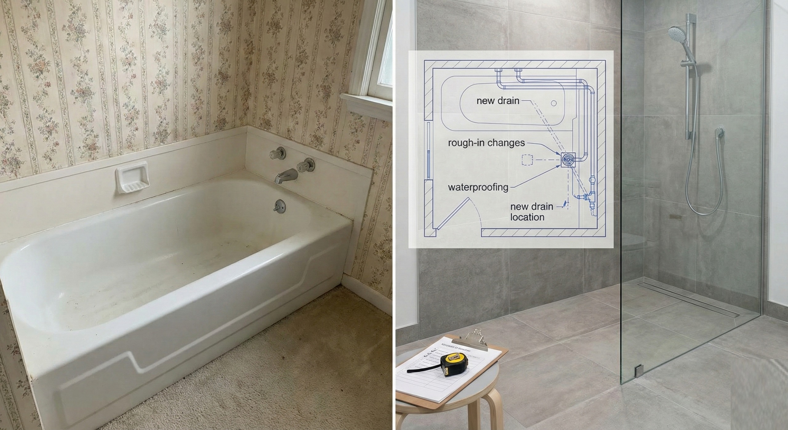 A tub-to-shower conversion can improve function and accessibility, but it can also change rough-in locations, waterproofing scope, and the tile plan. During scoping, we confirm what is staying, what is moving, and how the shower will be built and finished.