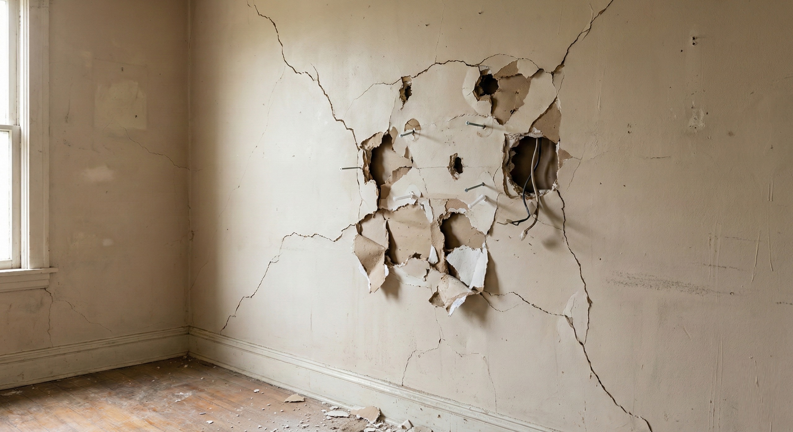 If the wall or ceiling damage is connected to framing movement, floor bounce, or structural shifts, address the cause first.
